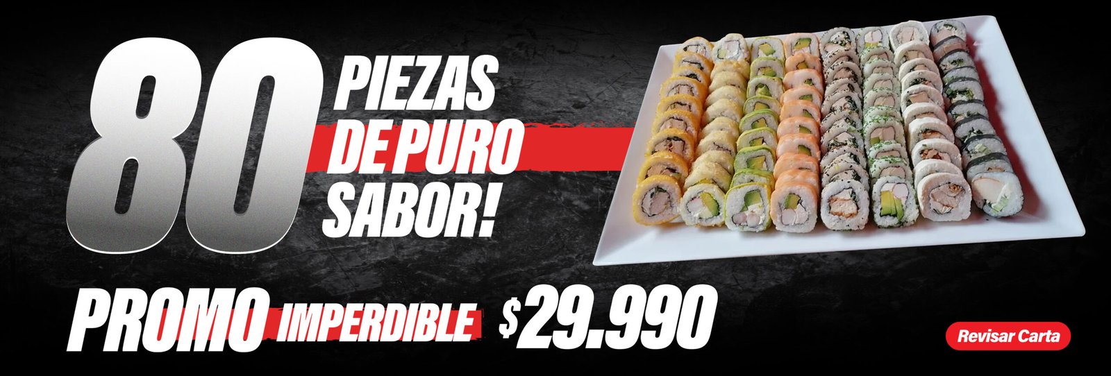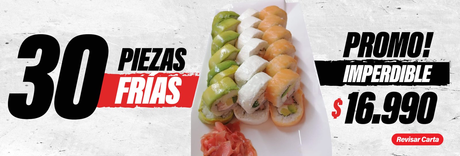 10 piezas: Kanikama, queso crema, frito en Tempura. 10 piezas: Pollo apanado, queso crema, cebollín, envuelto en sésamo. 10 piezas: Kanikama, palta, queso crema, envuelto en ciboulette. 10 piezas: Camarón, palta, queso crema, envuelto en palta. 10 piezas: Kanikama, queso crema, palta, envuelto en salmón 10 piezas: Palta, envuelto en nori.