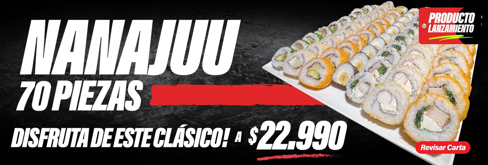 10 piezas: Kanikama, queso crema, frito en Tempura. 10 piezas: Pollo apanado, queso crema, cebollín, envuelto en sésamo. 10 piezas: Kanikama, palta, queso crema, envuelto en ciboulette. 10 piezas: Camarón, palta, queso crema, envuelto en palta. 10 piezas: Kanikama, queso crema, palta, envuelto en salmón 10 piezas: Palta, envuelto en nori.